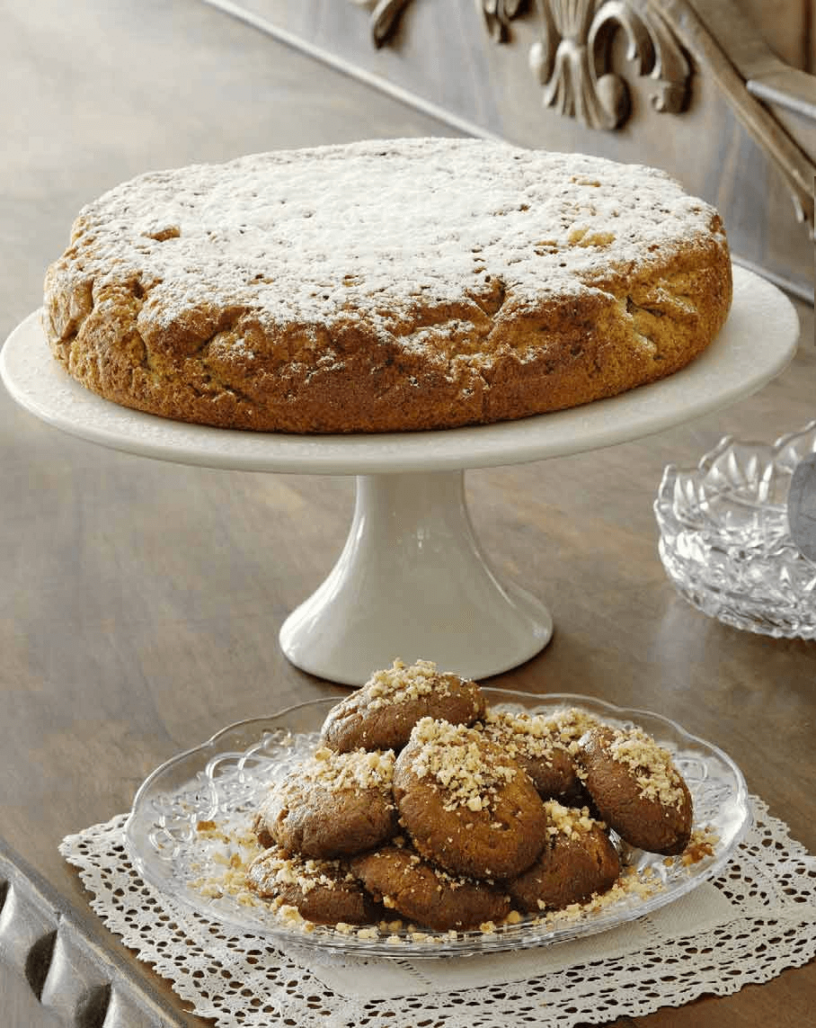 Once the cookies cool completely, dip them in the syrup and immediately sprinkle with the pistachio nuts or walnuts.