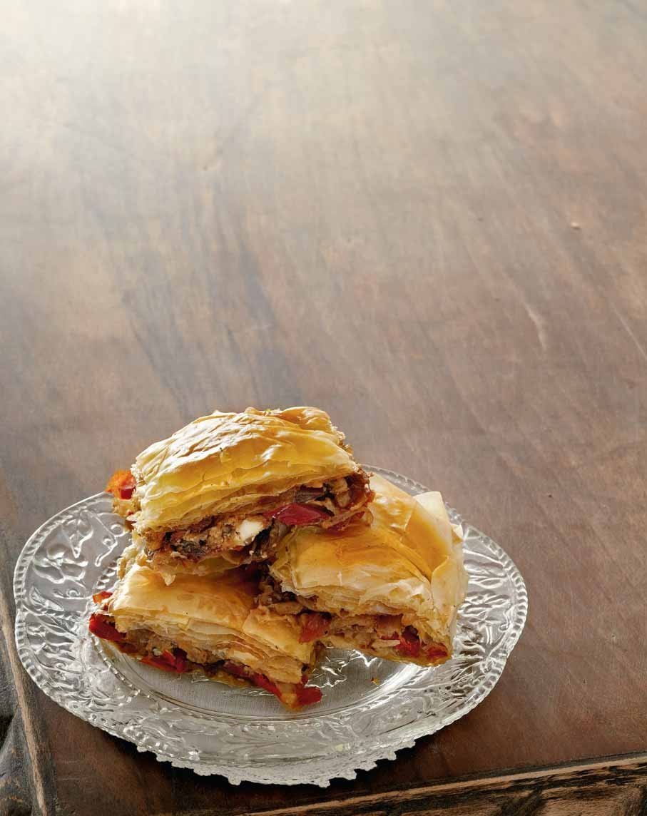 A pie that is both Greek and original. Serve as a starter during a festive meal. You can prepare the filling from the previous day and assemble the pie at the last minute before baking. Serve warm.